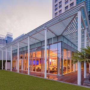 2 restaurants servant diverses cuisines vous attendent sur place dans l'hotel Conrad Singapore Marina Bay. Le lobby bar dispose d'une terrasse, ainsi que propose une variété de cocktails délicieux. Il bar présente un design brillant. De plus, le Summer Pavilion offre une variété de délices de la cuisine chinoise, à 450 m de.