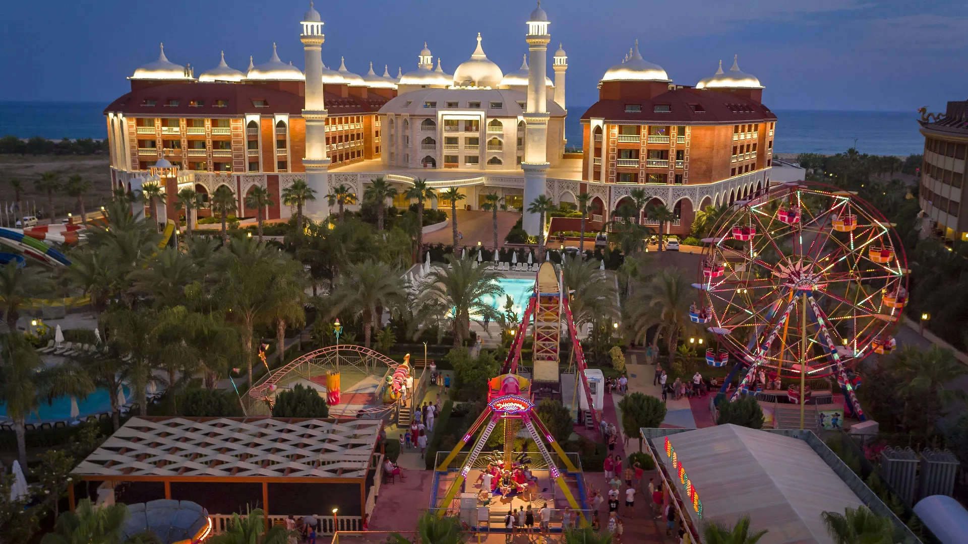 Situé dans le quartier "Kumkoy" à Sidé à 6 km du Musée de Side, Royal Taj Mahal Hotel Sidé offre une terrasse. Les clients de l'hotel 5 étoiles familial, qui propose un emplacement principal, peuvent profiter de 3 piscines extérieures et d'un restaurant à la carte.